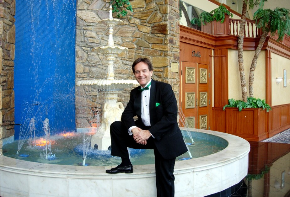 MICHAEL REDMAN AT THE FOUNTAIN IN THE LOBBY AT THE LA FONTAINE BLEU