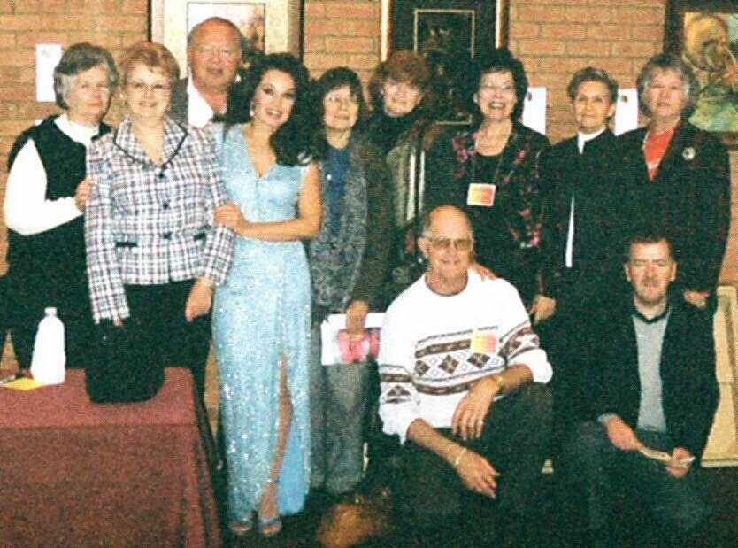 EVELYN FERSTL, DIANE MAXWELL, GENE MAXWELL, ANACANI, SHEILA, TERRY O'DONNELL, JUDY SHAW, ELOISE GOODMAN, ANN CARNELL AND CHARLES LETTERMAN WITH JIM HOLLIFIELD DOWN IN FRONT