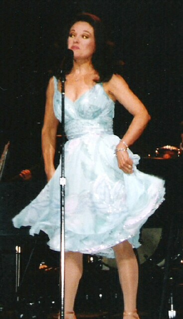 outfits and slips behind the curtains for about 15 seconds to "change" into the next one. She had 4 costume changes. She sang "Memories", in a heartfelt tribute to Lawrence Welk. At the end she wiped away some tears. She's so genuine. She did a great job singing and playing "Yours" on her guitar. She ended her segment with a terrific salsa number. |